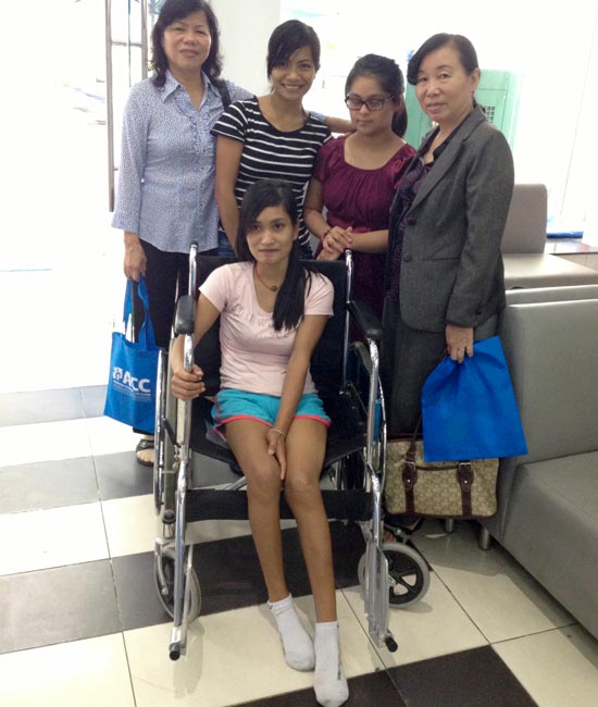 Lan is 27 years old, from Cantho in the Mekong Delta. Seven years ago, while working in Ho Chi Minh City, she contracted TB meningitis which left her fighting for her life and paralysed from the waist down. Her parents could not afford rehabilitation, medical care or even a wheelchair, so Lan returned to the countryside where her parents did their best to care for her at home. She stayed for many years in the same room, unable to move, until her sister brought her to Ho Chi Minh City. There Lan met a group of expatriates who raised money for her to have a wheelchair and physiotherapy. When Karishma and her parents heard about Lan’s story, they were moved to help her further.